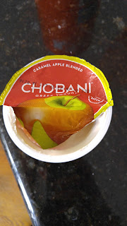 Chobani caramel apple blended Greek yogurt is better. It has real apple pieces, and the sweetness cuts the tang of the yogurt. I definitely recommend it over the pumpkin spice one. 3.5/5.